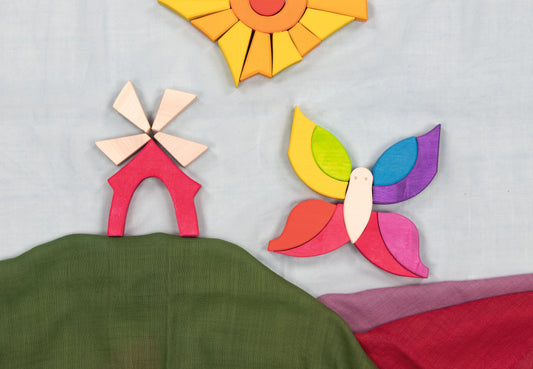 Nachhaltig gefertigt, mit viel Liebe zum Detail- zeitloses Spielzeug, das Kreativität und freies spielen fördert.
