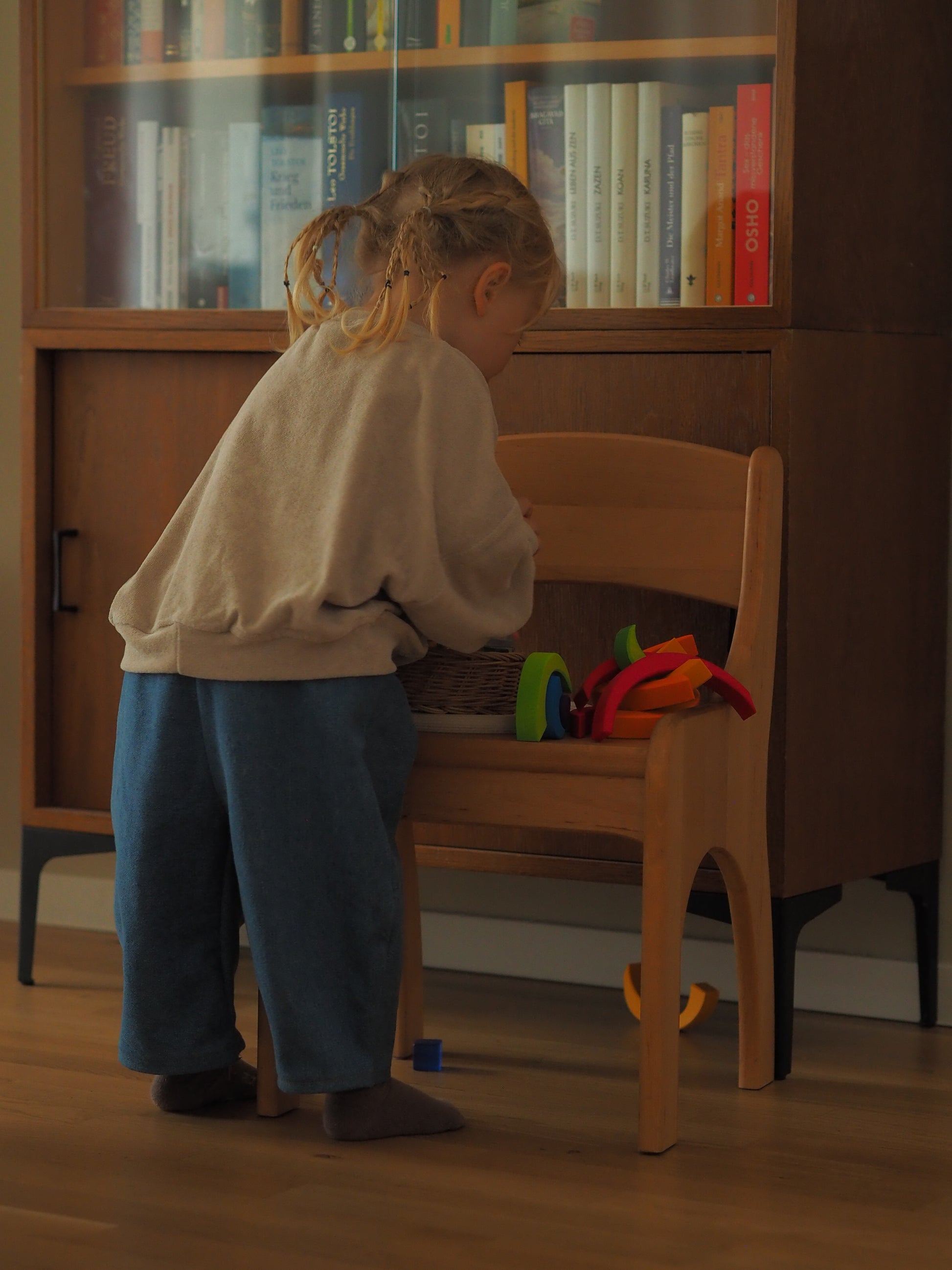 Ob in der Werkbank-Ecke, beim Tanzen durchs Wohnzimmer oder draußen im Garten – diese Hose schenkt Geborgenheit und Raum zum Wachsen.