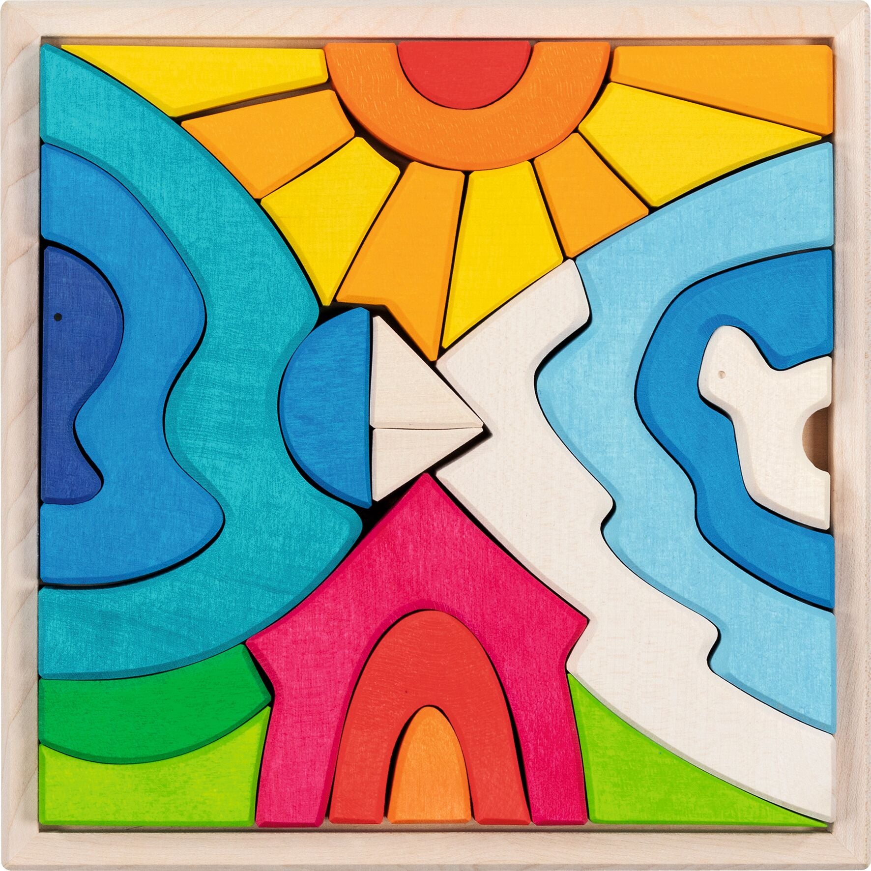 Mit diesen vielseitigen Puzzleteilen lassen sich wunderschöne Höhlen, Landschaften aber auch kreative Bauwerke bauen – und wenn man Glück hat, statten Eisbär und Wal einem einen Besuch ab. Mit seinem naturbelassenen Material setzen die Puzzleteile haptische und visuelle Anreize für ein Spiel voller Freude am Selbstgestalten.