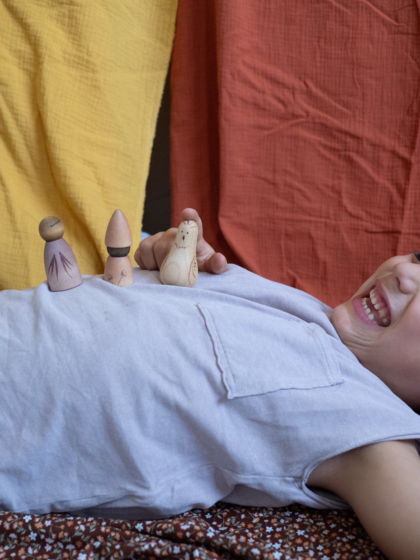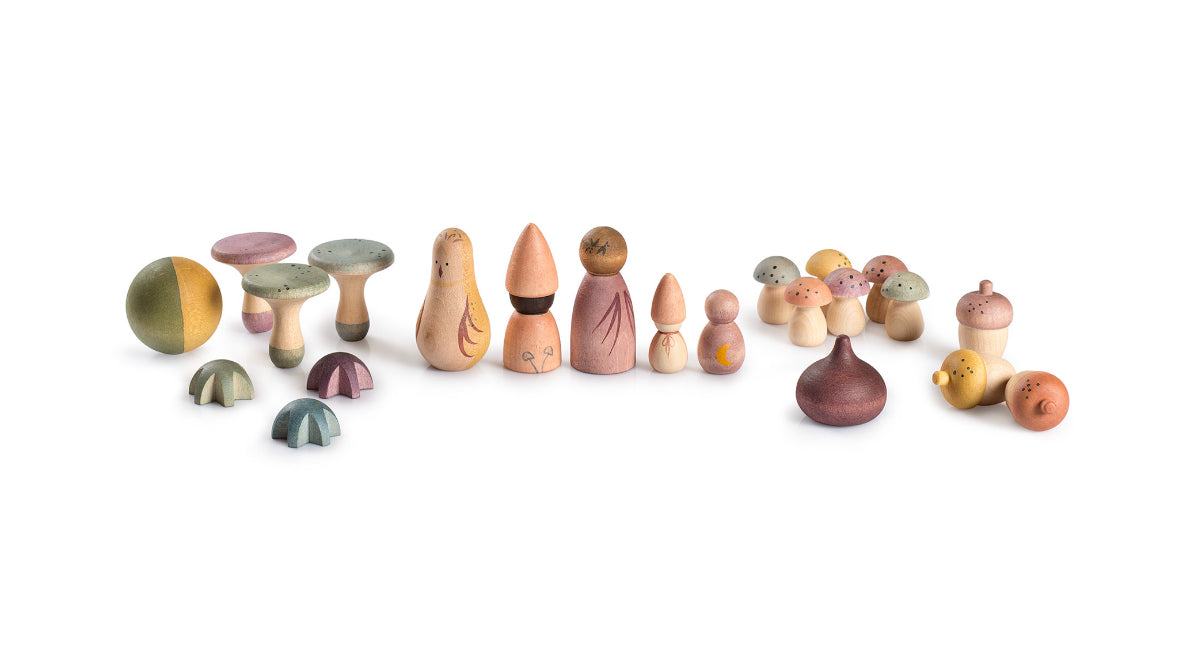 In einem Mondlichtreich beginnt eine neue Geschichte: Moonlight Tale besteht aus 22 zarten Holzstücken in variierenden Formen und Größen, in sanften, verdünnten Farben. Jede Figur kann Teil einer Fantasiewelt sein – ob als Pilz, Bewohner, Stern oder Baumwesen – und lädt Kinder dazu ein, eigene Geschichten zu weben und zu entdecken.