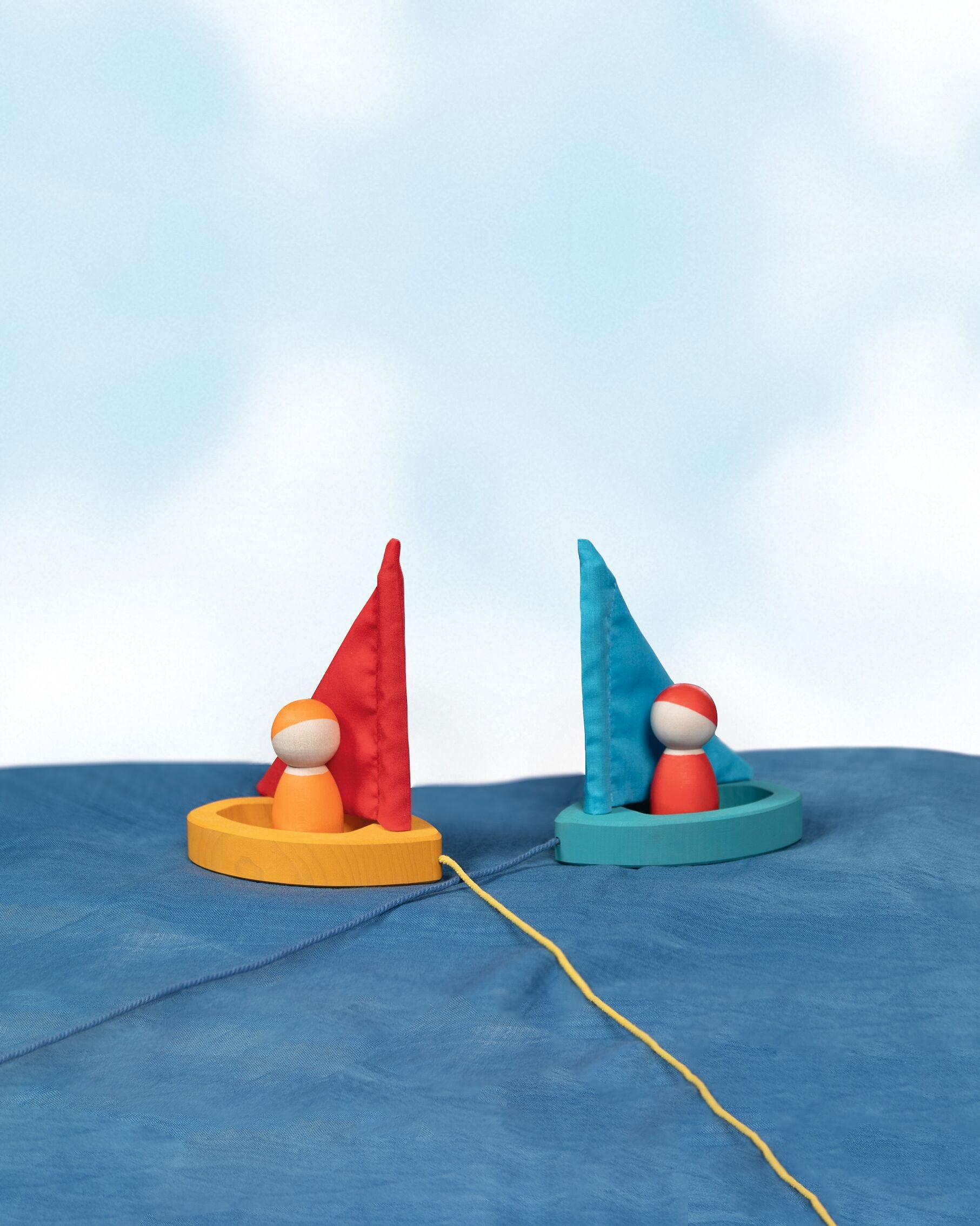 Mit diesen kleinen Schiffchen wird jede Pfütze zum Ozean. Die kleinen Segelboote sind mit einer Schnur versehen, sodass sie sicher geleitet über das Wasser schippern können.