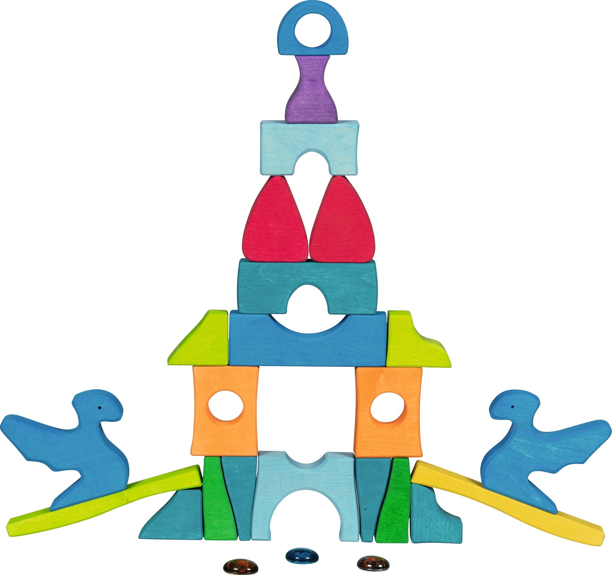 Mit unserem Schlossbaukasten Burg Funkelstein werden kleine Baumeister zu großen Architekten! Der wunderschöne Baukasten begeistert mit seinen Formen und funkelnden Glasnuggets, die wie Edelsteine schimmern. Ob das märchenhafte Schloss, die geheimnisvolle Burg oder der fantasievolle Turm - die freien Spielmöglichkeiten sind grenzenlos. Natürlich 100 % Made in Europe!