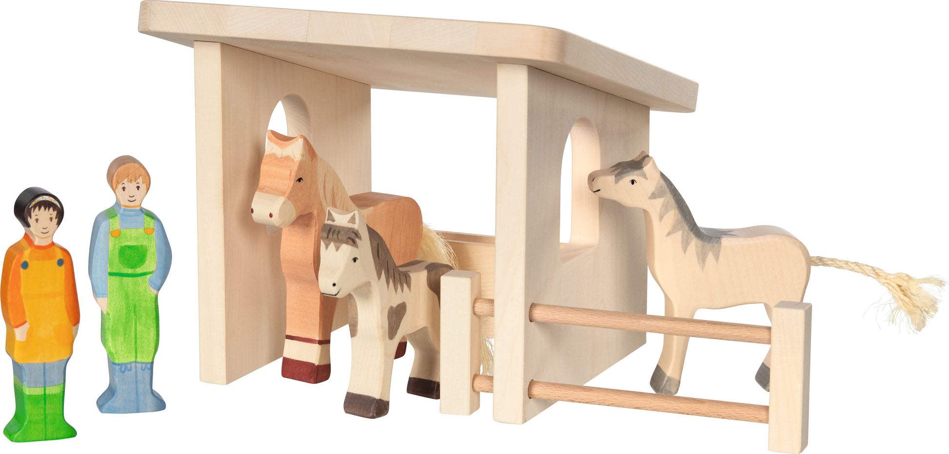 Wenn sich die Lieblingstiere Ihres Kindes einmal ausruhen müssen, ist dieser Unterstand aus Holz der perfekte Ort dafür. Er fügt sich nahtlos in das Spiel der Kinder ein und erweitert es um eine Spielmöglichkeit. So können sie all ihre Schäfchen ins Trockene bringen
