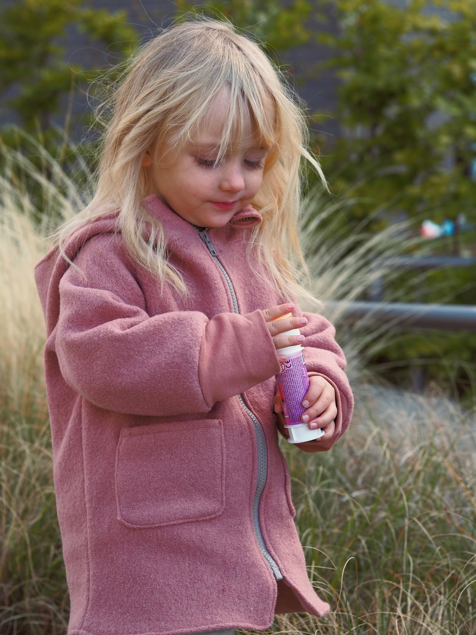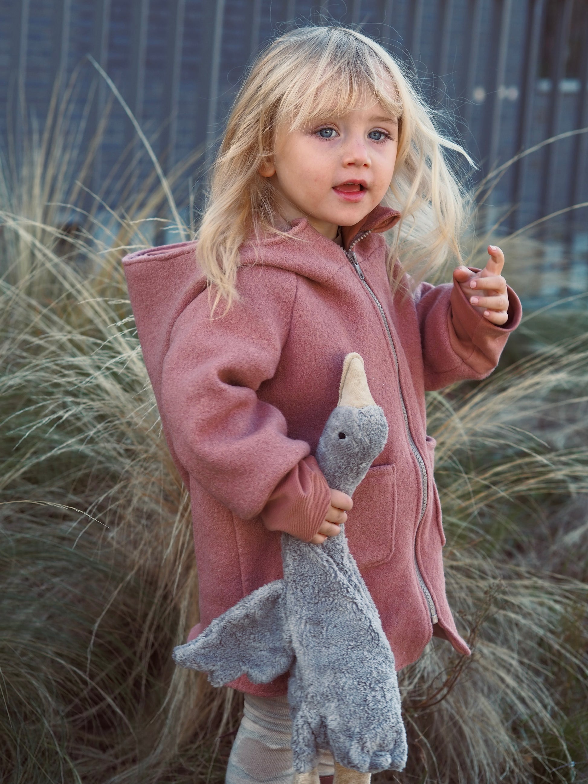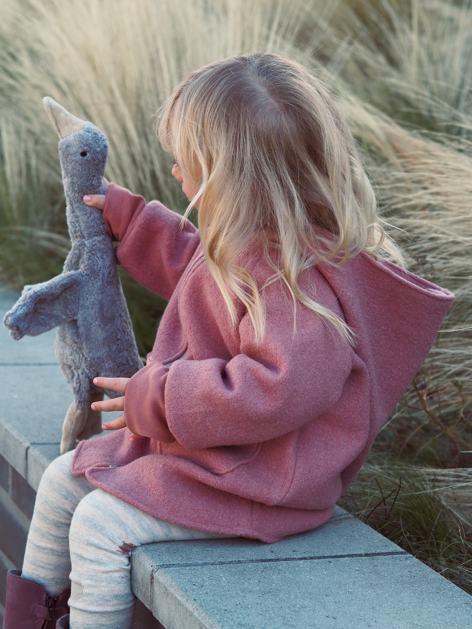 Ein Mantel wie eine Umarmung – genäht aus feinem Wollwalk, der kleine Herzen wohlig warm hält. Innen weich gefüttert mit Baumwolle und sanften Bündchen, die jedes Abenteuer begleiten. Der Reißverschluss mit Garage schützt zarte Haut, während die Oversize-Passform viel Bewegungsfreiheit schenkt und mitwächst. Liebevoll gestaltet, zeitlos schön und gemacht, um lange Freude zu schenken.